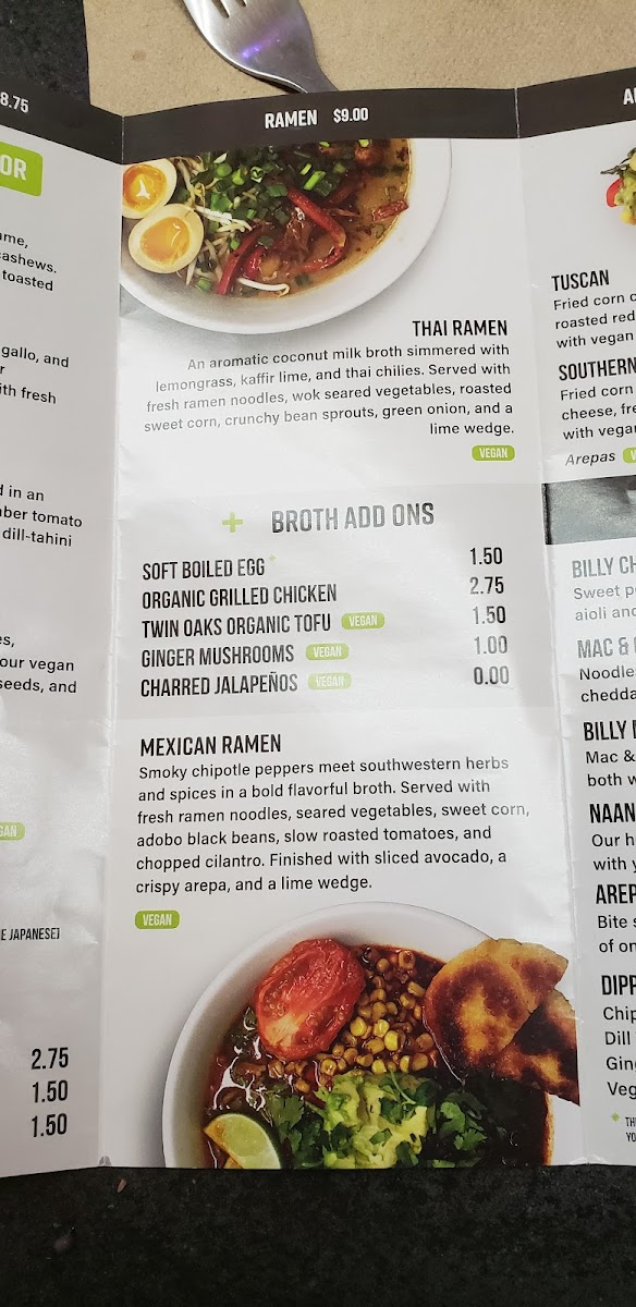 Smoky chipotle peppers meet southwestern herbs and spices in a bold flavorful broth. Served with authentic ramen noodles, wok seared vegetables, sweet corn, adobo black beans, slow roasted tomatoes, topped with our chipotle aioli, a lime wedge and chopped cilantro. (gf using rice noodles or quinoa base), (v)